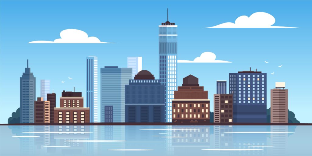The final design I created was a cityscape that brings together different modes of transportation in one scene. The collage is set against a clear blue sky and a modern skyline with tall buildings. An airplane is flying overhead, a hot air balloon floating on the water, a train running through the city, and vehicles like a car, bus, and boat are all placed in the same frame. The collage shows transportation across air, land, and water.