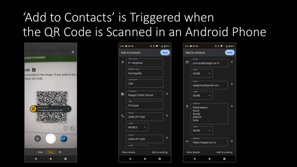I knew about QR code generators for websites, videos, images, forms etc. But it was my first realising that we could even save someone’s contact details easily by just scanning a QR Code. This process is done by vCards.